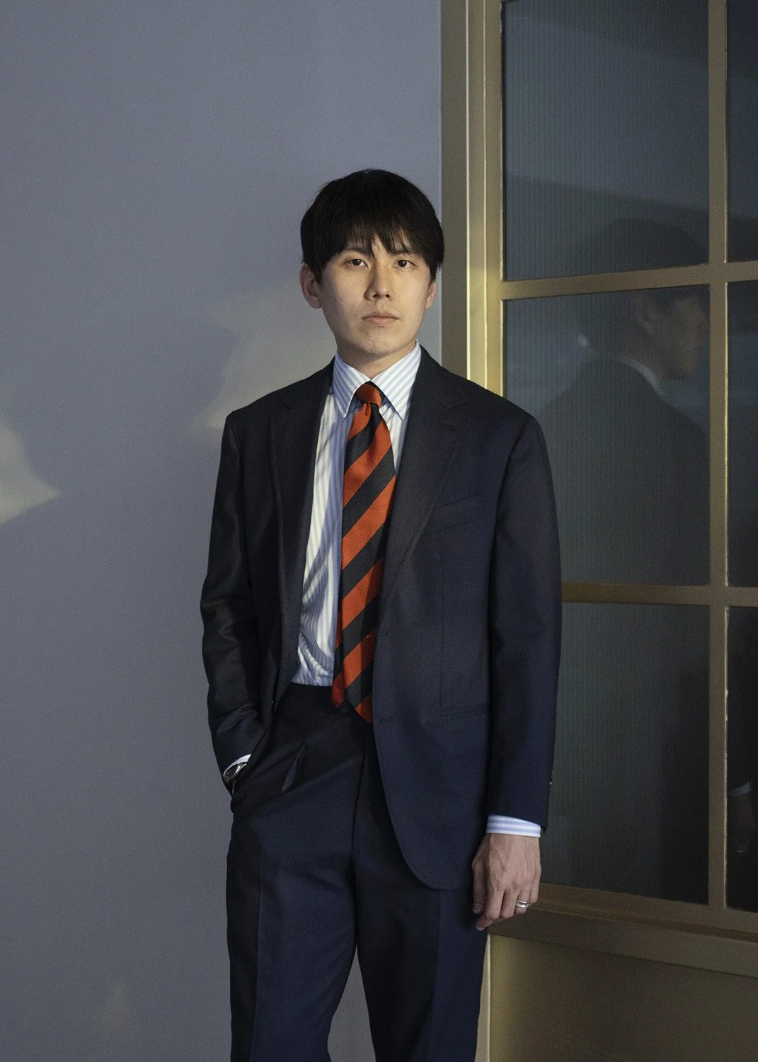 Professional Look B - Wearing TCR1982 Standard Bespoke Suit in Navy, paired with pastel blue striped shirt and vintage striped necktie.
